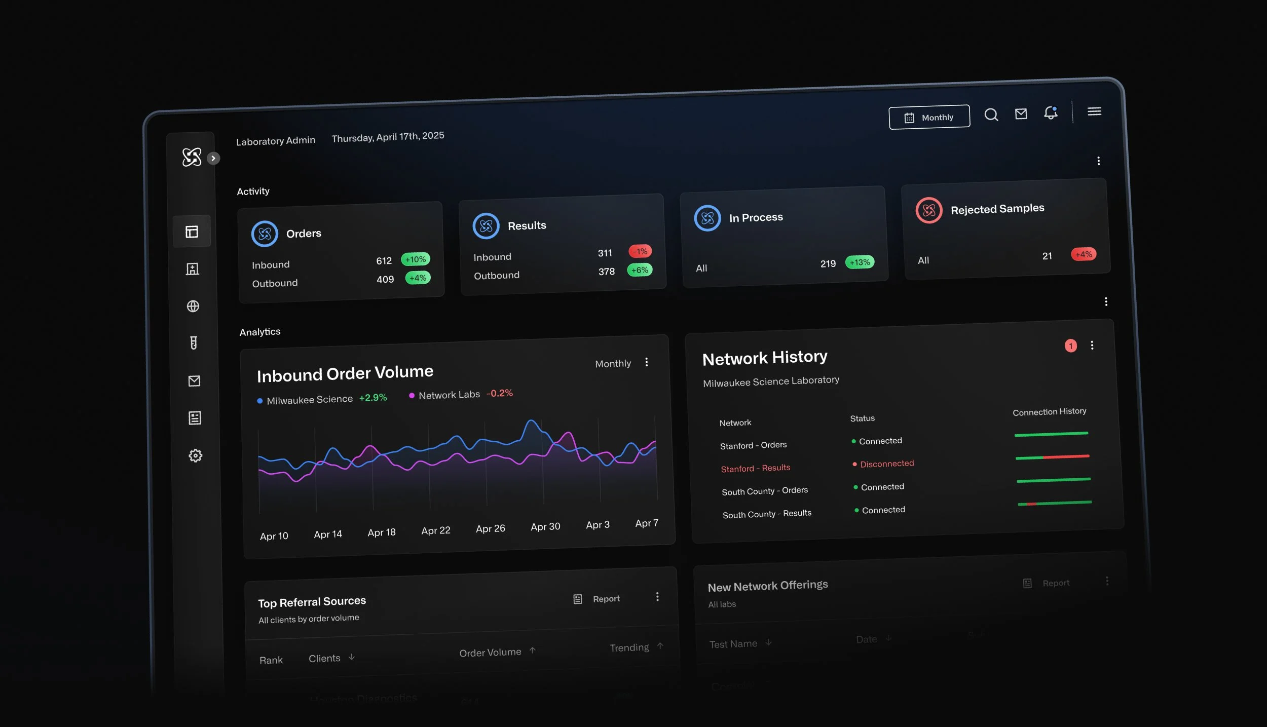 Design for a web-based SAAS platform that connects health care providers with diagnostic laboratories.